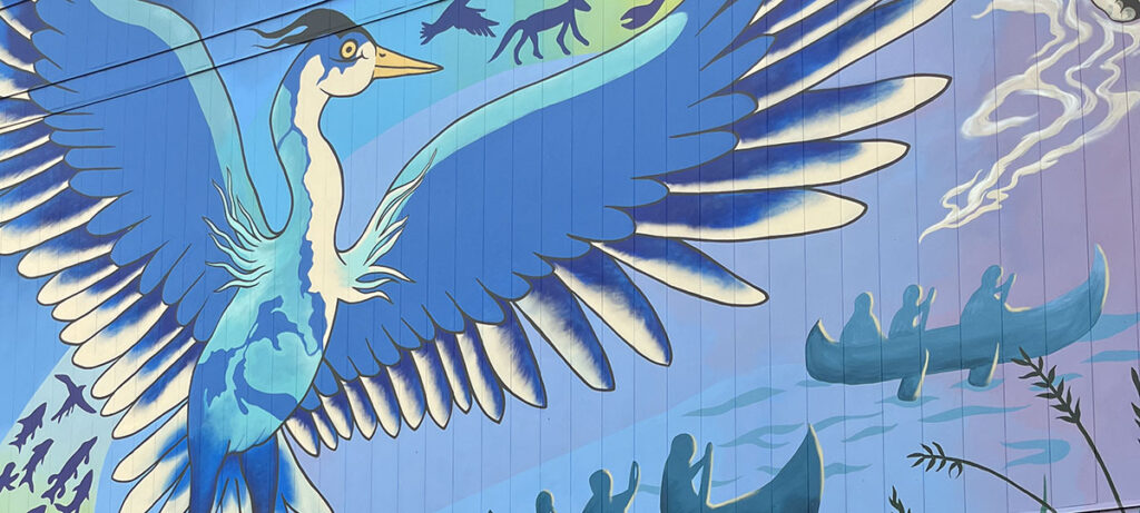One of the first things you will see after landing at Billy Bishop Toronto City Airport and one of the last as you depart, is Maanjidowin: The Gathering, located on the dock wall overlooking the Western Gap.